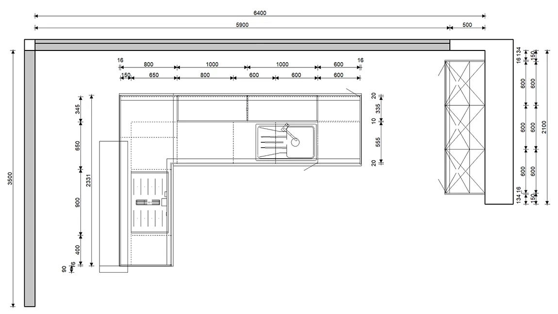 Proline Eiche basaltgrau gebürstet - Preis für Möbel inkl. Arbeitsplatte, Spüle und sonstigem Zubehör. |